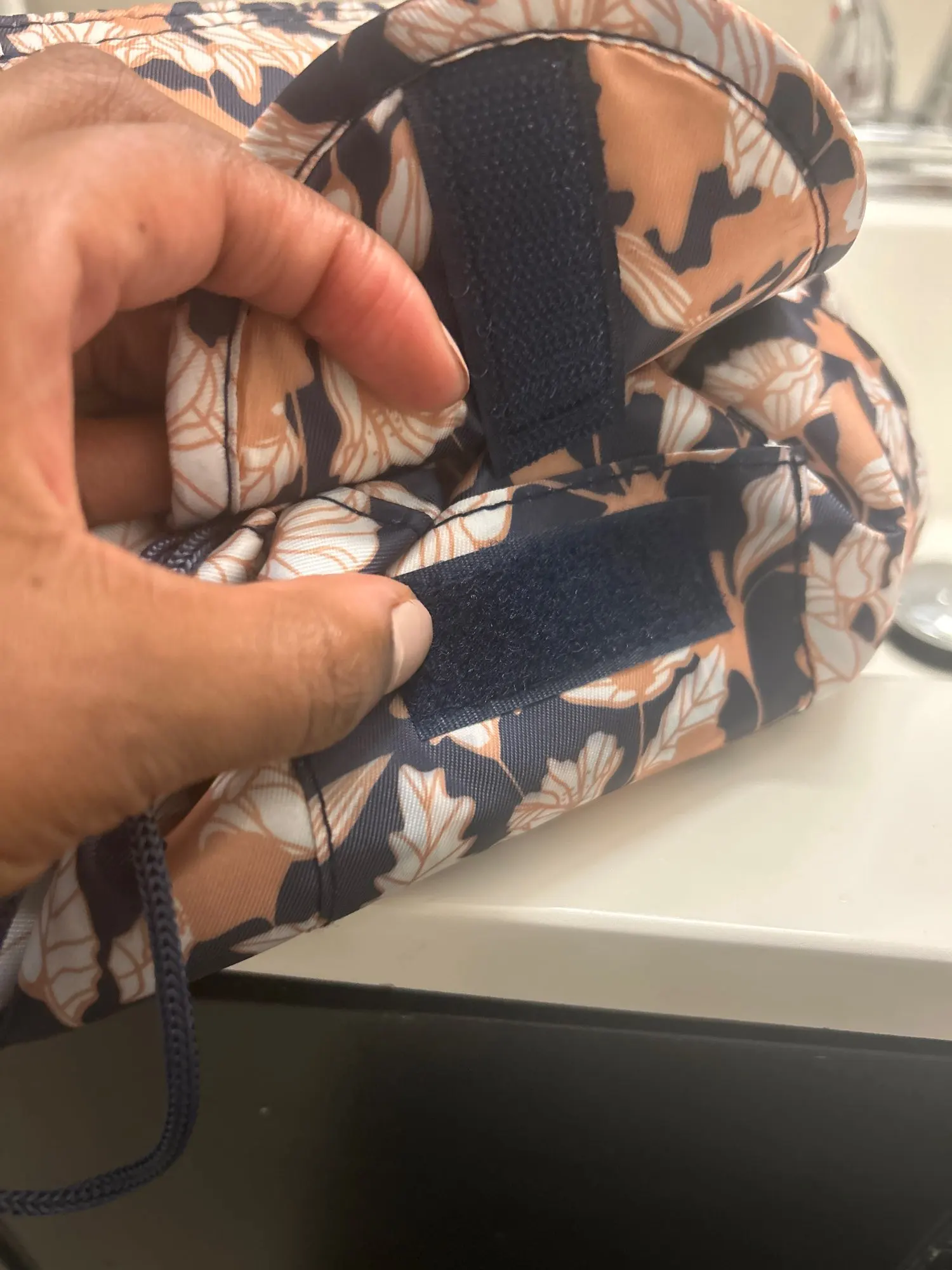 Love this! EXACTLY as described. Only strange thing is the Velcro doesn’t alight (one strip is vertical and the other is horizontal) but it closes just fine(plus there are draw stings)!